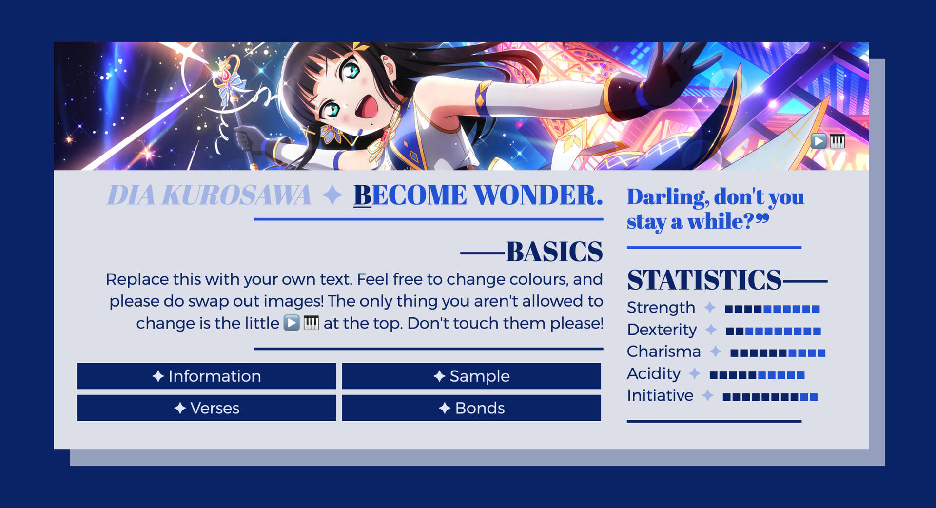This template is suitable for free accounts. It was designed with the roleplay community in mind. Enjoy.